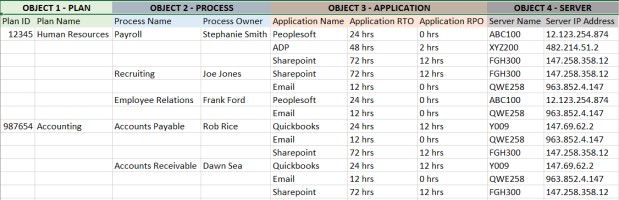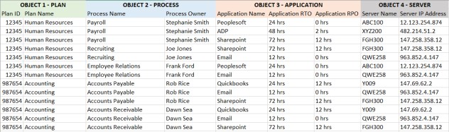 On the first row, add the object names of the object at each level and align the object name with the first field exported with that level.