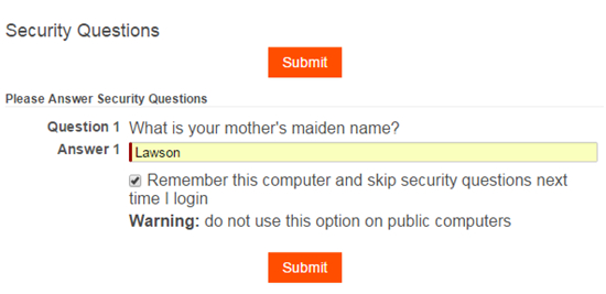 Example: In the following graphic, the user has answered a single security question and checked the option to remember this computer: