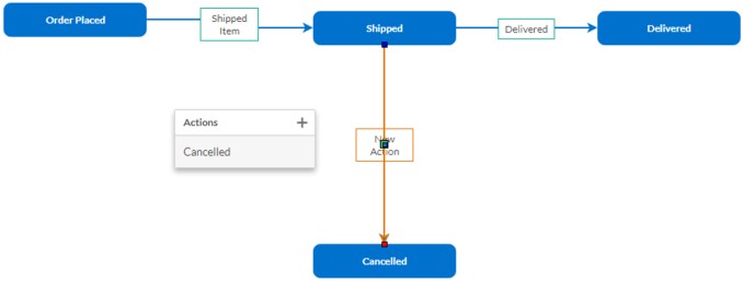 As the name indicates, Action Label - Show/Hide allows you to show/hide the actions label from the workflow process diagram. This helps to save space and visualize your statuses better. By default, the Action Label will be shown. An action connector line is automatically created when you connect two saved statuses. An Action pop up appears displaying the list of all existing actions if available for the target status, when two statuses are connected. This helps you to change the status to the target status. When there are no existing actions, the Actions pop up will be populated only with an Add New Action icon.