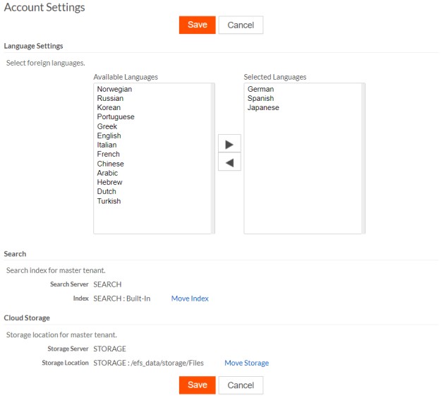 The following describes the options on the Account Settings page for a Master Tenant and how they can be used.