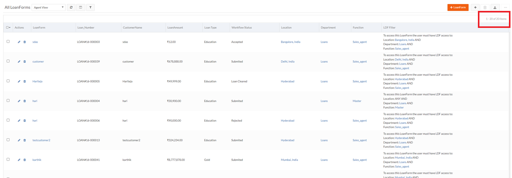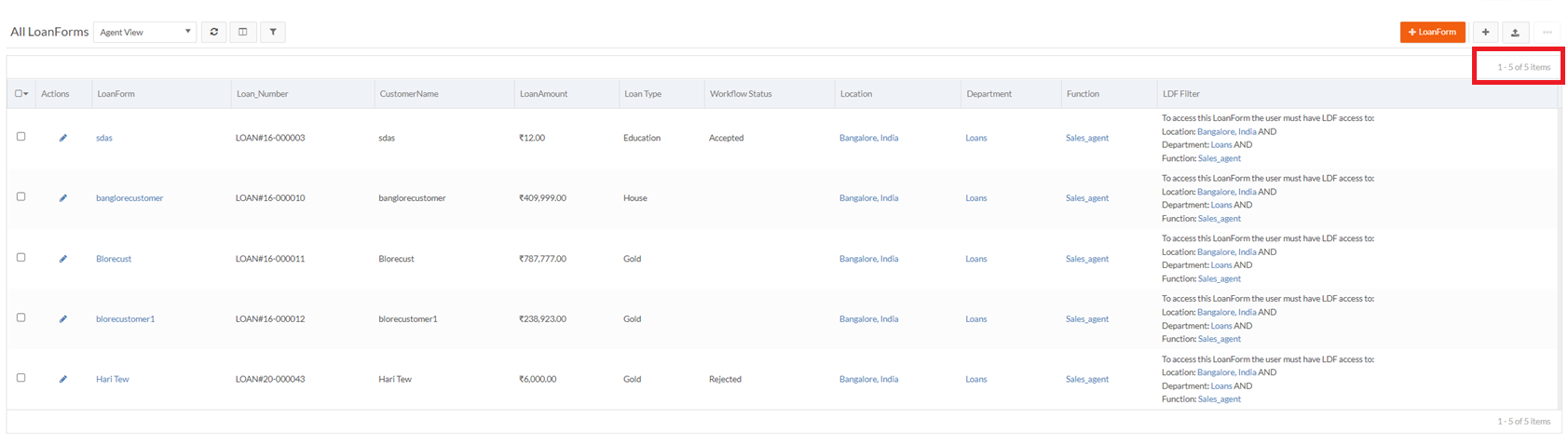 The following scenario gives a visibility on records assigned with LDF values. For an ADMIN, if on exporting a report, all the records within the object is listed in the report.