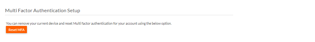 A user can reset it's Multi-Factor Authentication used for login from the Change My Password page (as seen in the above image). To remove the user's current device and reset the Multi-Factor authentication of the account, select Reset MFA.
