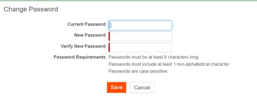 To change their password, a user must enter the old password and the new password (twice, to verify). The new password must conform to the password requirements selected for the user’s tenant. For information about security and access control, see Portal security.