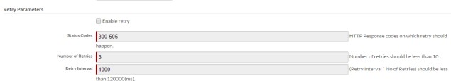 - Status Codes — Set status code on which you want the HTTP retries to happen. It can be a comma separated values of status codes as well as a range of status codes. For example, 302-400,500.