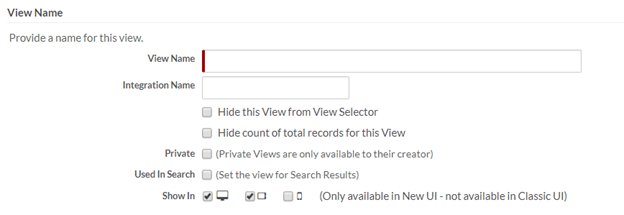 • Hide this View from View Selector — When selected, this view is not available in the view selector on application pages.