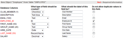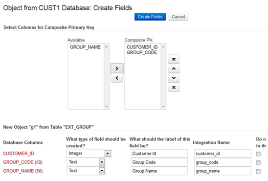 Each database column can be mapped to a field in newly created external object. These fields will be added to the following pages: View, New record, and Edit. If you do not map column to a new field you can create fields from unused columns later.