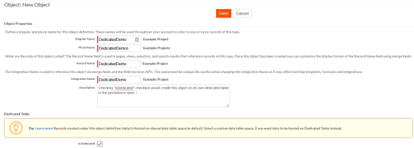 Note: Currently, Dedicated tables is certified only with MySQL Database.
