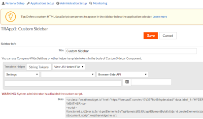 In the classic UI, when you add a custom sidebar, it appears on the left sidebar and is included in the published application. You can add your own component using HTML or JavaScript. You can also use widgets or gadgets from providers such as Google or Yahoo. You can also use client-side JavaScript functions. See Client-side JavaScript for more information.