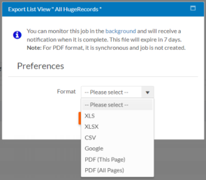 Likewise, the following screen shows all the export formats available for a view in Platform for all asynchronous exports.