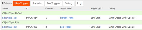 For example, if an app developer creates an “on create” timing Trigger for the “Epic” object type and if “Default” object type also has an “on create” timing trigger defined.