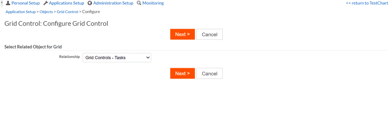 Note: The grid control Config option in the Application Setup is only available if the page contains at least one Grid Control.
