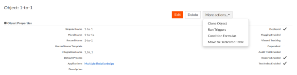 Dedicated tables also introduces a new related action available for each field to promote the existing fields to contain unique values only. This option is exposed only if the object definition is marked as dedicated and the field can be set to the attribute - Do not allow duplicate values in this field.