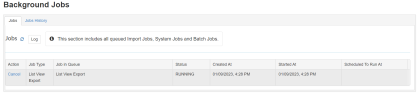 - Depending on the type of work, cancelling running jobs might or might not stop the running job right away. (While other task types don't behave batch-wise and might not be cancelled once picked up, import/mass updates will cancel at the start of the subsequent batch inside running jobs.)