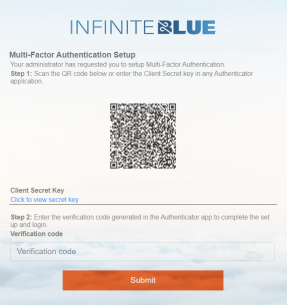 Once MFA is enabled for a user, the next login will prompt the user to configure it by scanning a QR code or manually entering a Client Secret Key in an authenticator app.