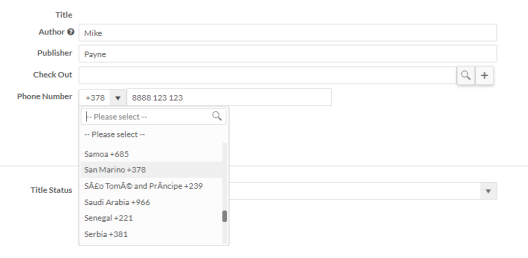 While adding/updating a record with a phone number field, the user can perform a search using any Country Name or Country Code from the corresponding drop down.