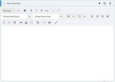 When you select Plain Text & HTML as the section type, a rich HTML editor where you can enter the content of the section is added. You can also style and format the section using the toolbar available in the editor.