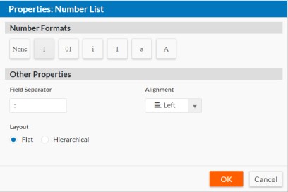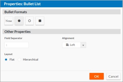 In the Bullet list or Number list type of render pattern, the following parameters can be configured: