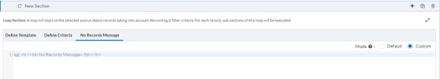 - Custom mode – Based on HTML editor. The generated report gets executed from the html script written in the editor and displays the message when no records are available.