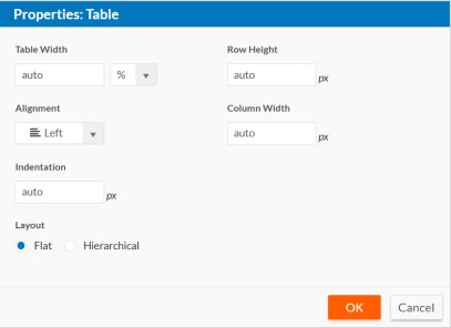 - Layout – The layout of the table can be set to either Flat or Hierarchical . By default, the layout is set to Flat.