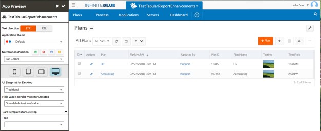- From the UI Blueprint Desktop drop-down, select Traditional as the UI blueprint.