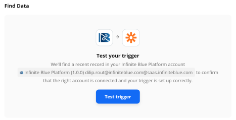 Copy the REST Hook dynamic URL received on the email. You can send a request to this REST Hook dynamic URL using Infinite BluePlatform triggers.