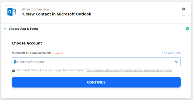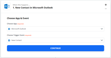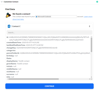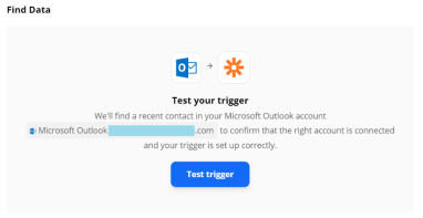 Click Test Trigger to find any recent contact added to the Outlook Account and set the trigger correctly.