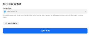 Choose a Contact Folder if available and click Continue.